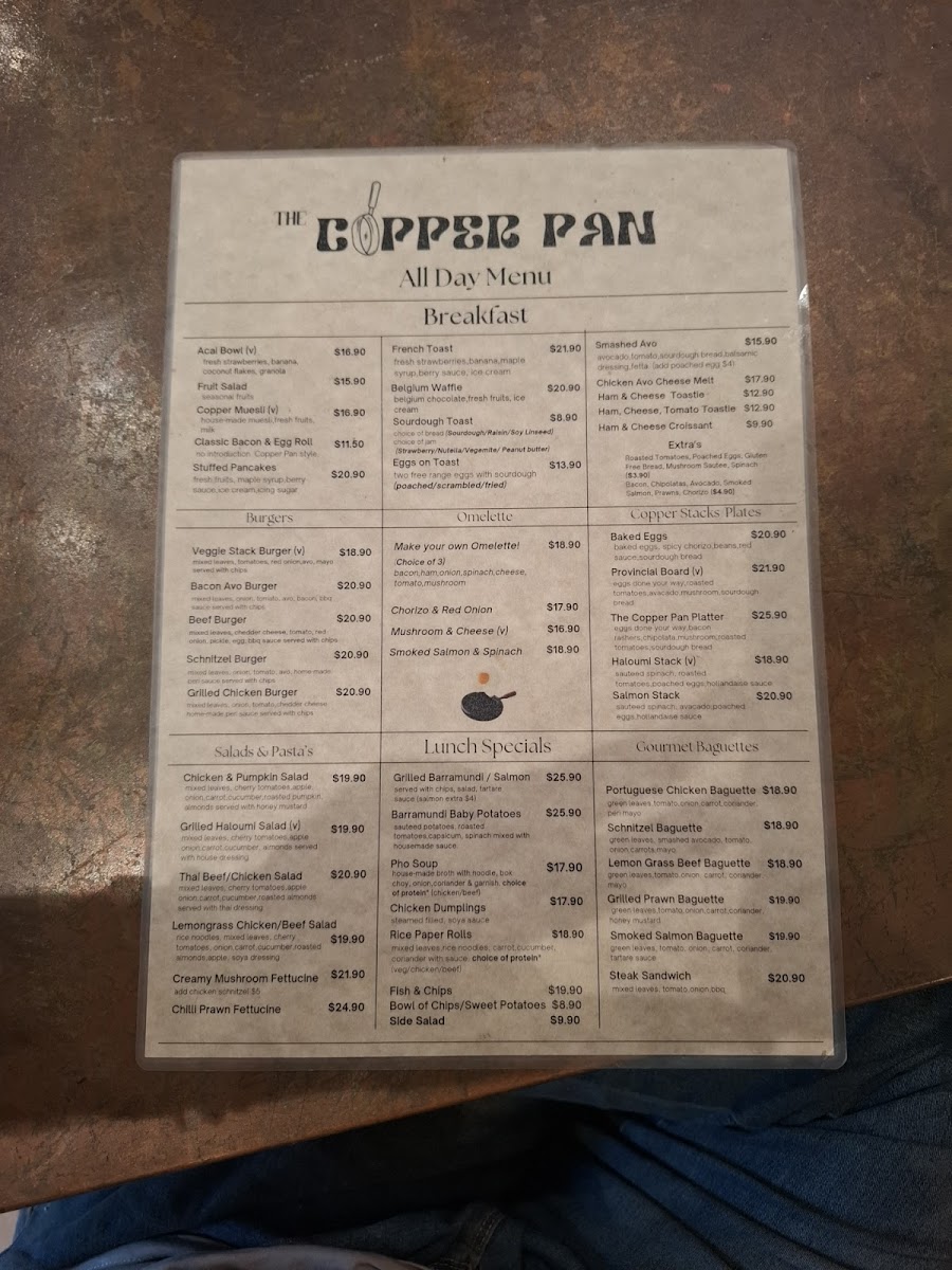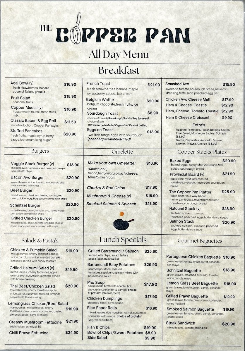 The Copper Pan Menu