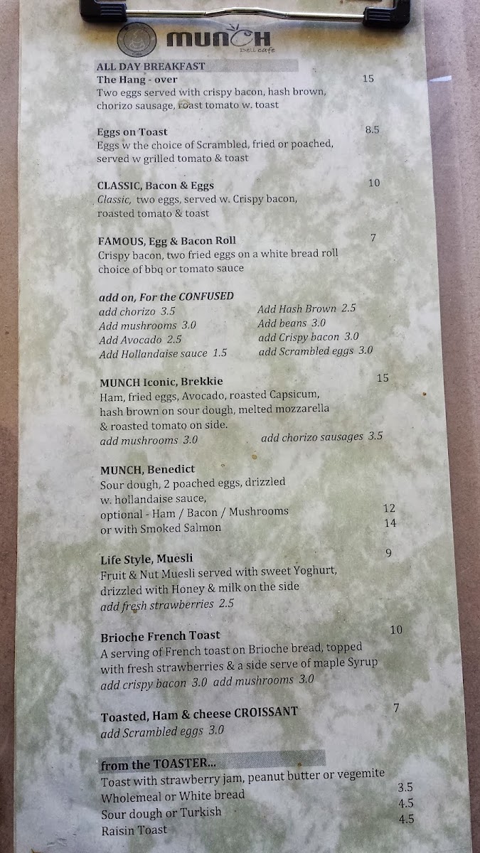 The menu supports a range of dining occasions from breakfast and mid-morning coffee breaks to light lunches, with options that can accommodate both quick orders and more relaxed sit-down meals.